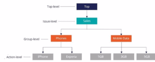 MyCo, a mobile company, uses Pega Customer Decision Hub to display offers to customers on its website. The company wants to present more relevant offers to customers based on customer behavior. The following diagram is the action hierarchy in the Next-Best-Action Designer.