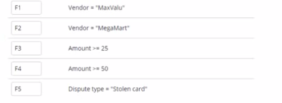 Most disputes for the stolen cards occur at two vendors, MegaMart and MaxValu. The fraud analyst requests a report that displays stolen card disputes meeting the following thresholds:
