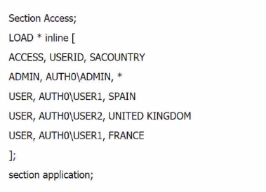 USER1: This user has access to Spain and France because the SACOUNTRY field specifies these countries for USER1.