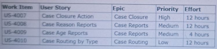 The business analyst should prioritize US-4007 and US-4009 because they are the most critical work items. US-4007 is the work item that will allow customers to submit support tickets, and US-4009 is the work item that will allow customer service representatives to view and respond to support tickets. These two work items are essential for the MVP to be functional.