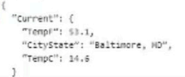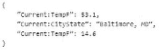 A developer needs to build a DataRaptor Transform to send current weather to both an OmniScript Card Layout. Which of these samples would be valid for the Expected Output JSON?