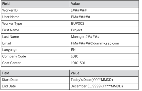 Business Scenario You are working on an implementation project and need to create a test user in the system for demonstrating the professional services business processes to project managers during your upcoming Fit-to-Standard workshop. Follow the instructions below to create a new test user with a basic import of worker and work agreement data.