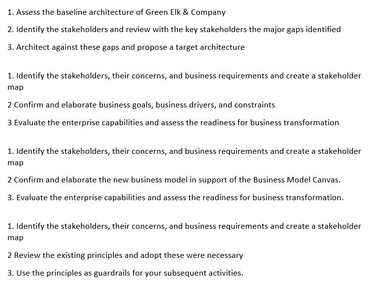 This method ensures that the architecture vision is aligned with the business strategy, that stakeholder needs are adequately addressed, and that the company is prepared for the changes that will come with the new business model.