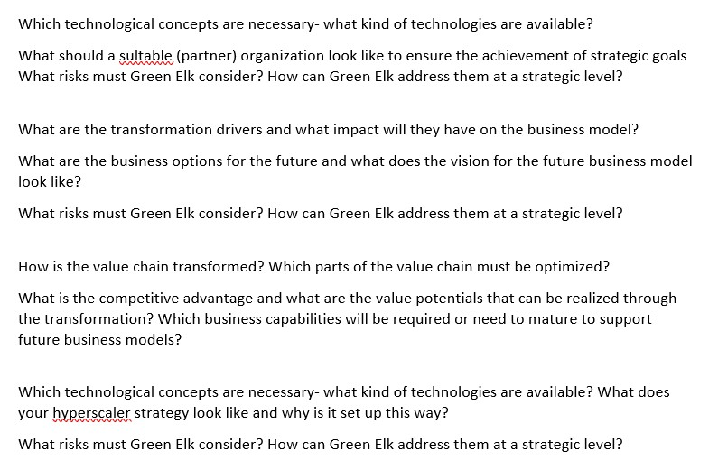 What is the competitive advantage and what are the value potentials that can be realized through the transformation?Understanding the unique strengths of Green Elk & Company and how they can be harnessed to create value in the new business environment is crucial for the success of the expansion strategy.