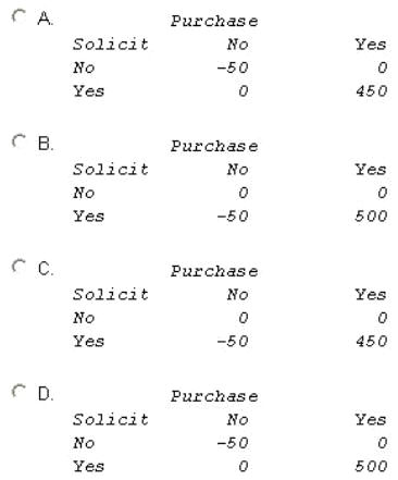 A marketing campaign will send brochures describing an expensive product to a set of customers. The cost for mailing and production per customer is $50. The company makes $500 revenue for each sale.