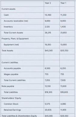 This is the balance sheet for Swinney Services. Using trend analysis, what does this information tell us about the trends for current assets and current liabilities?