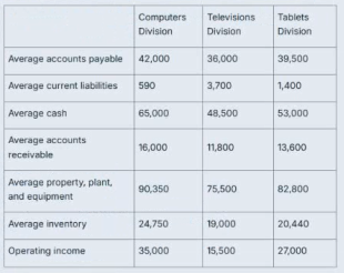 This is select financial statement data for the three divisions of Technology Goods, Inc. Assuming all assets are operating assets, what is the return on investment for each division?