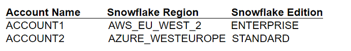 A Snowflake organization MYORG consists of two Snowflake accounts: