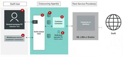 From the outsourcing agent diagram, which components in the diagram are in scope and applicable for the Swift user.
