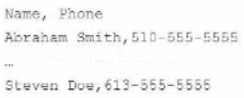 <OCR>Name, Phone Abraham Smith, 510-555-5555 ... Steven Doe, 613-555-5555 </OCR>