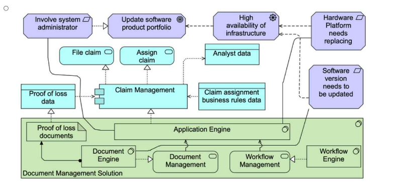 This scenario revolves around ArchiSurance's document management solution and the motivations behind updating the solution due to software and hardware challenges. The task is to model both the applications and technology components involved, along with the motivations driving the need for an update.