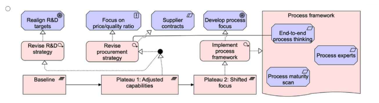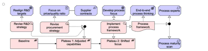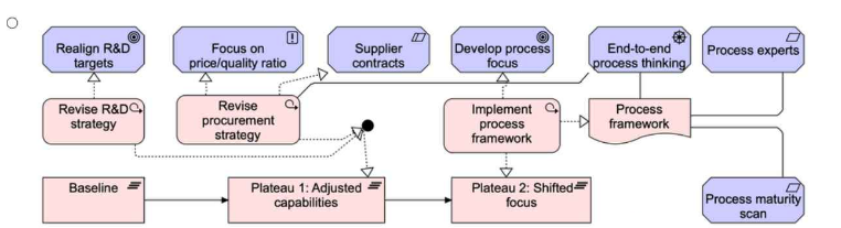 Plateau 1 (Adjusted Capabilities): Focuses on revising the R&D strategy and procurement strategy.