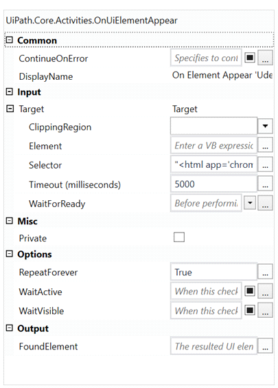 Please find properties of On Element Appear 'UiPath Logo' below