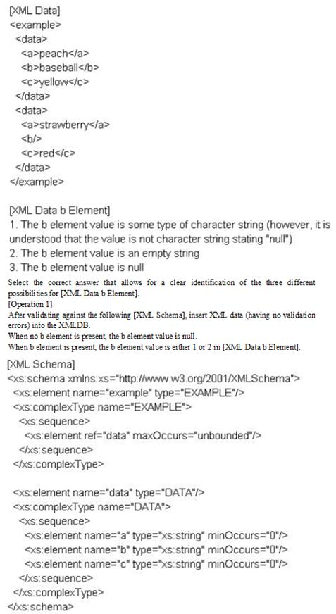 Assume the use of XML Data like [XML Data] referenced in a separate window. When a data element is present in XML Data, there are three possibilities for b element as shown in [XML Data b Element] (separate window). No other possibilities are available.
